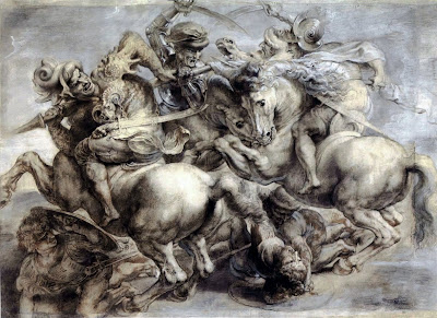 | Dette er en kopi av Leonardos "Anghiarislaget" utført av Peter Paul Rubens. Dvs. kopien er ikke hele bildet, men et utnitt. |